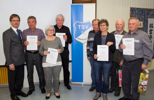 Zum Abschluss des Ehrungsreigens wurden auch noch zahlreiche, langjährige Mitglieder des TSV ausgezeichnet:
