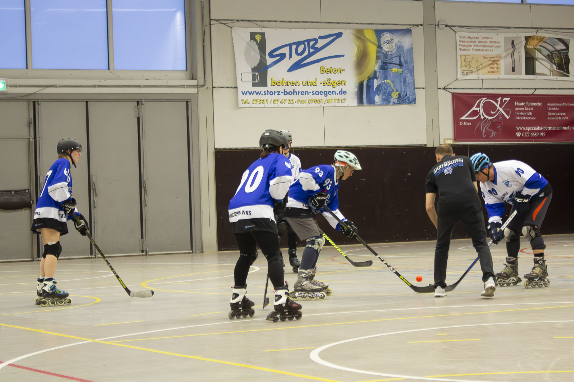 Am dritten Abend wurde es dann richtig spannend: Inline-Skaterhockey in der Schwarzwaldhalle. Anfangs noch etwas wackelig auf den Rollen, entwickelten sich schnell richtig gute Spielzüge – und der Spaßfaktor stieg von Minute zu Minute.